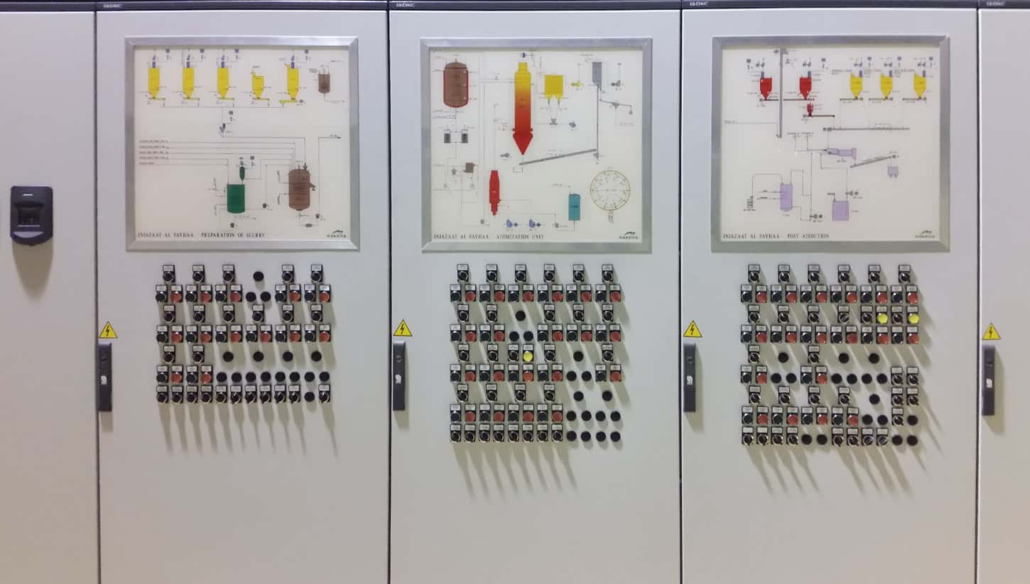 Slurry preparation is batch-wise while spray drying process is continuous. All operations are controlled and regulated by advanced PLC system and various local control panels, guiding the plant in accordance to formulate the desired recipes.