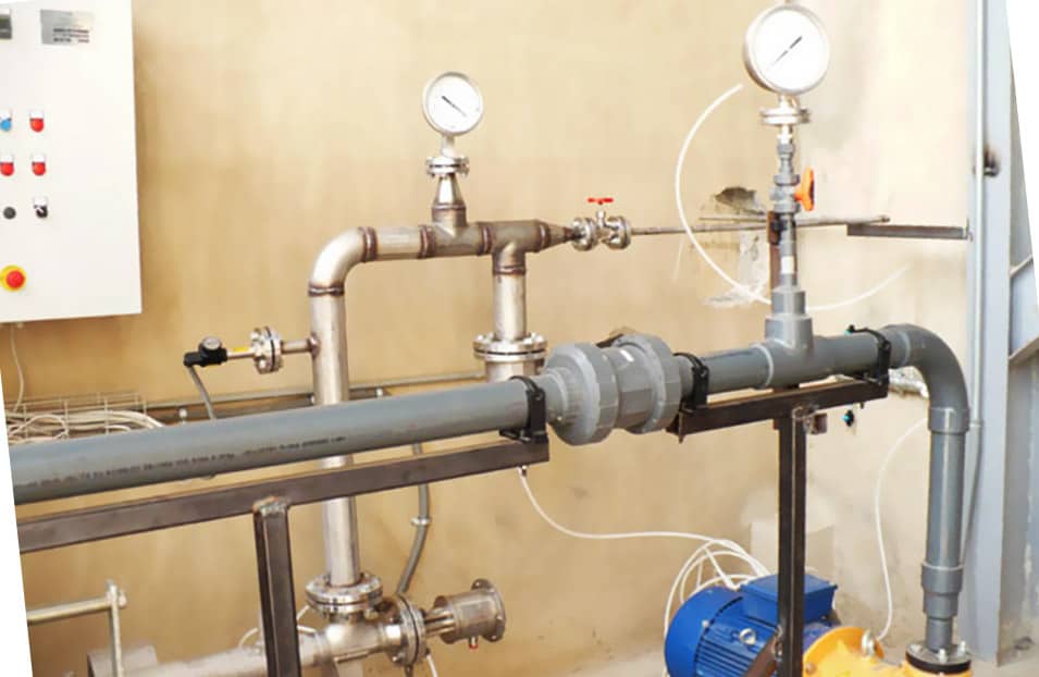 Reaction loop: The closed reaction loop is composed by: liquid jet ejector, static mixer, sodium hypochlorite circulation tank, circulation pump and cooler. Adsorption and mixing of reactants, which start in the ejector, are promoted and completed by the static mixer and the circulation tank. In the latter equipment, also the initial charging of caustic soda and demi water is carried out. Circulation pump and cooler are designed in such a way as to avoid heat buildup in the reaction loop, which could lead to a harmful increase of product temperature.